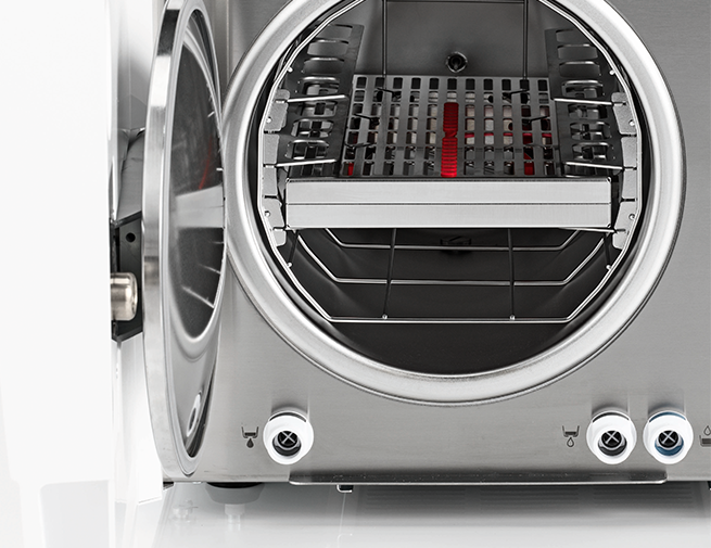 Az integrált ásványianyag-mentesítő szűrő lehetővé teszi a csapvíz közvetlen használatát külső eszközök nélkül, míg az integrált vezetőképesség-érzékelő folyamatosan figyeli a vízminőséget, biztosítva a megbízható teljesítményt és fenntartva az autokláv hatékonyságát az idő múlásával.