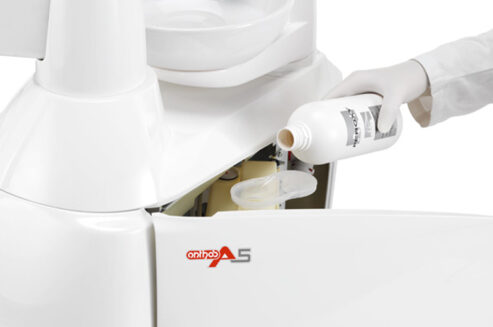 BIOSTER és öblítés – A BIOSTER automatikus rendszer intenzív fertőtlenítést végez a készülék belső permetező körein antiszeptikus folyadékkal (Peroxy Ag+). Az ÖBLÍTÉS gyors öblítéssel eltávolítja a pangó folyadékot a csövekből.