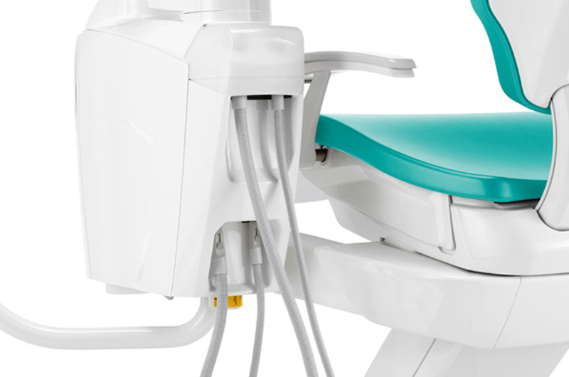 Rugalmas telepítés – A fogászati egység telepítésekor szükséges adaptációs munka minimalizálása vagy teljes megszüntetése érdekében két ponton lehet a padlókivezetésekhez csatlakozni. A lábtartó alatt vagy az egység eleje alatt. Ez nagyobb rugalmasságot biztosít egy régi betegszék cseréjekor.