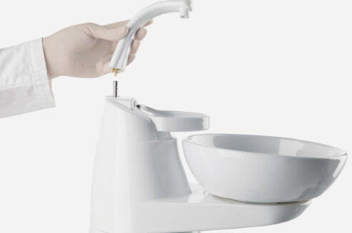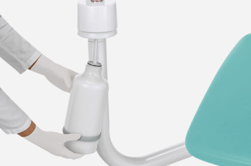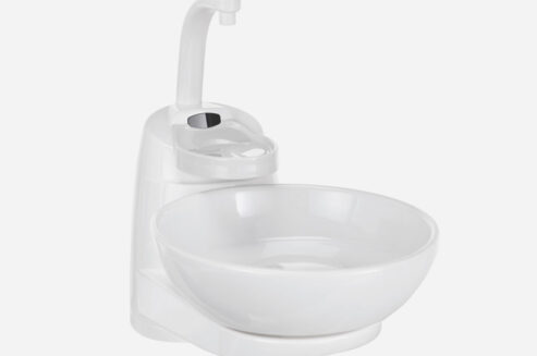 A víz-pohár rendszer opcionálisan felszerelhető automatikus töltésérzékelővel. A kerámiacsésze teljesen kivehető, így gyors és hatékony fertőtlenítést tesz lehetővé. Opcionálisan motoros, köpőcsésze is kapható. Ebben az esetben a szoftver szinkronizálja az öblítési feladatokat és a betegszék mozgását.