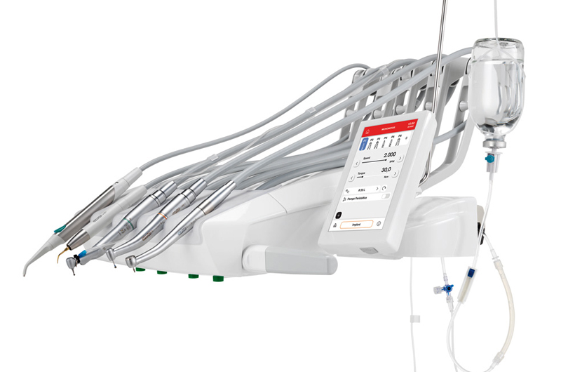 A Full Touch kezelőpanel által vezérelt perisztaltikus szivattyú a fogorvosi modulba van beépítve, így nincs szükség több modulra, kocsira és reosztátra.