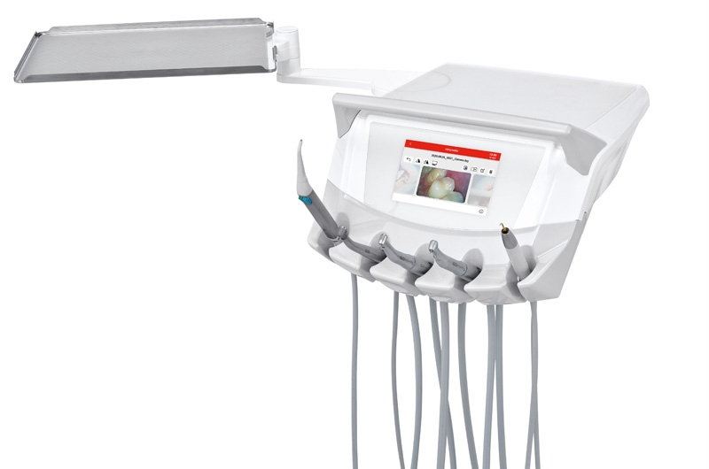 A standard 3 műszeres modul több pozíciót is felvehet, így minden klinikai igényre hatékonyan reagál. A készülékházzal ellátott, mindkét kézhez használható modellekhez egy pozícionálható rozsdamentes acél tálcatartó modul teszi teljessé a tartozékok kínálatát.