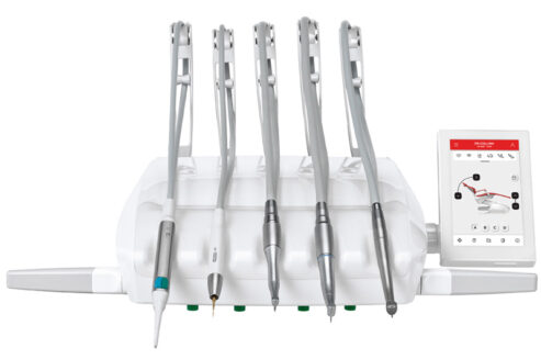 Az opcionális modul 5 műszert tartalmaz. Bármilyen pozíciót felvehet a munkaergonómia maximalizálása érdekében. A 2 kanül akár 3 kiválasztott kézidarabbal kombinálható, beleértve a kamerát, a fecskendőt, a T-LED polimerizációs lámpát vagy a dinamikus műszert.